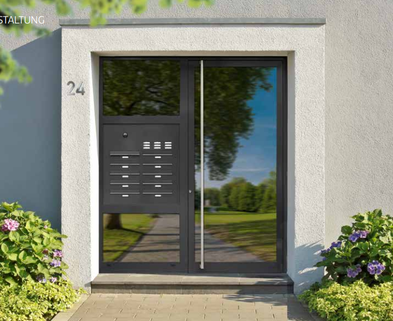 Haustüranlagen mit Seitenteilen und Zubehör aus Aluminium, Kunststoff, Holz sowie Kellertüren oder Nebeneingangstüren.